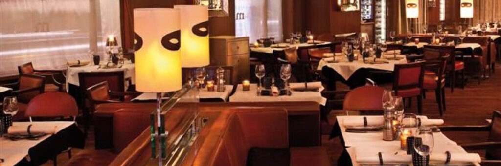 L’atmosphère est celle d’un restaurant dessiné par Stark il y a des années, un poil vieillissant mais avec une certaine personnalité et où l’on se sent bien. A proximité de cette place de la Bourse qui a beaucoup de charme. Le plein centre de Paris où tout est proche et assez facile d’accès (si l’on ne prend pas sa voiture). Le restaurant est élégant, le mobilier est an adéquation, les tables sont nappées. Un grand bar, des consoles, du bois et des cuirs clairs ainsi que de grands lustres de Murano concourent à l’ambiance vénitienne et baroque. Les WC sont aussi propres que superbes. Les tables sont relativement espacées. L’on préférera les quelques tables de 2 ou de 4 (il y en a peu) avec la petite terrasse ouverte (ou la vue en hiver) sur la Bourse. Le restaurant s’étire en longueur et il y même quelques alcôves.